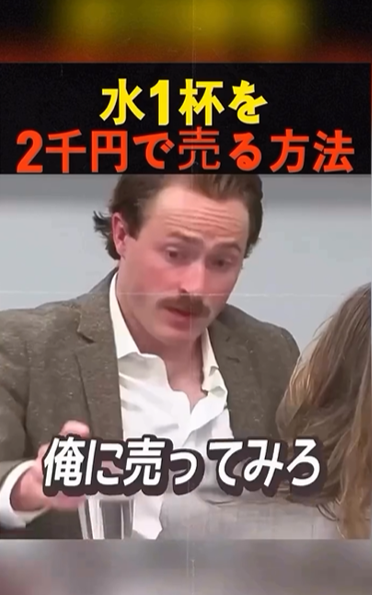 みなさんこんにちは、今日のテーマは、「水1杯を2千円で売る方法」です。⤴画像をクリックするとオリジナルのinstagramのページにジャンプします!まさにこの動画こそ、「その手があったか…