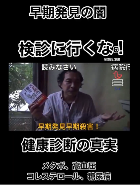 みなさんこんにちは、今日のテーマは、「早期発見の闇 検診に行くな! 健康診断の真実」です。⤴画像をクリックするとオリジナルのTwitter(X)のページにジャンプします!健康診断に行く…