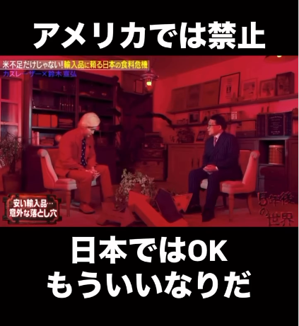 みなさんこんにちは、今日のテーマは、「アメリカでは禁止 日本ではOK もう言いなりだ」です。⤴画像をクリックするとオリジナルのinstagramのページにジャンプします!輸入肉や小麦…ア…