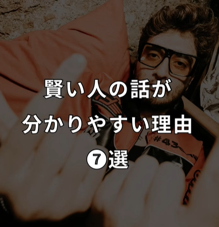 みなさんこんにちは、今日のテーマは、「賢い人の話が分かりやすい理由⑦選」です。⤴画像をクリックするとオリジナルのTikTokのページにジャンプします!だから、あの人の話は分かりやすかった…