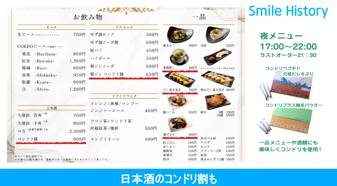 また本間さんの会社では、勾玉レストランの健康食材として提供しているコンドリプラス製品の代理店でもありトップセールスを継続中。