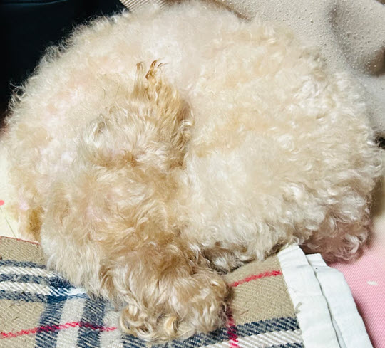 じつは3匹のトイプードルがいたのですが、うちの奥様がもっとも小さい「こはる」を所望しました。